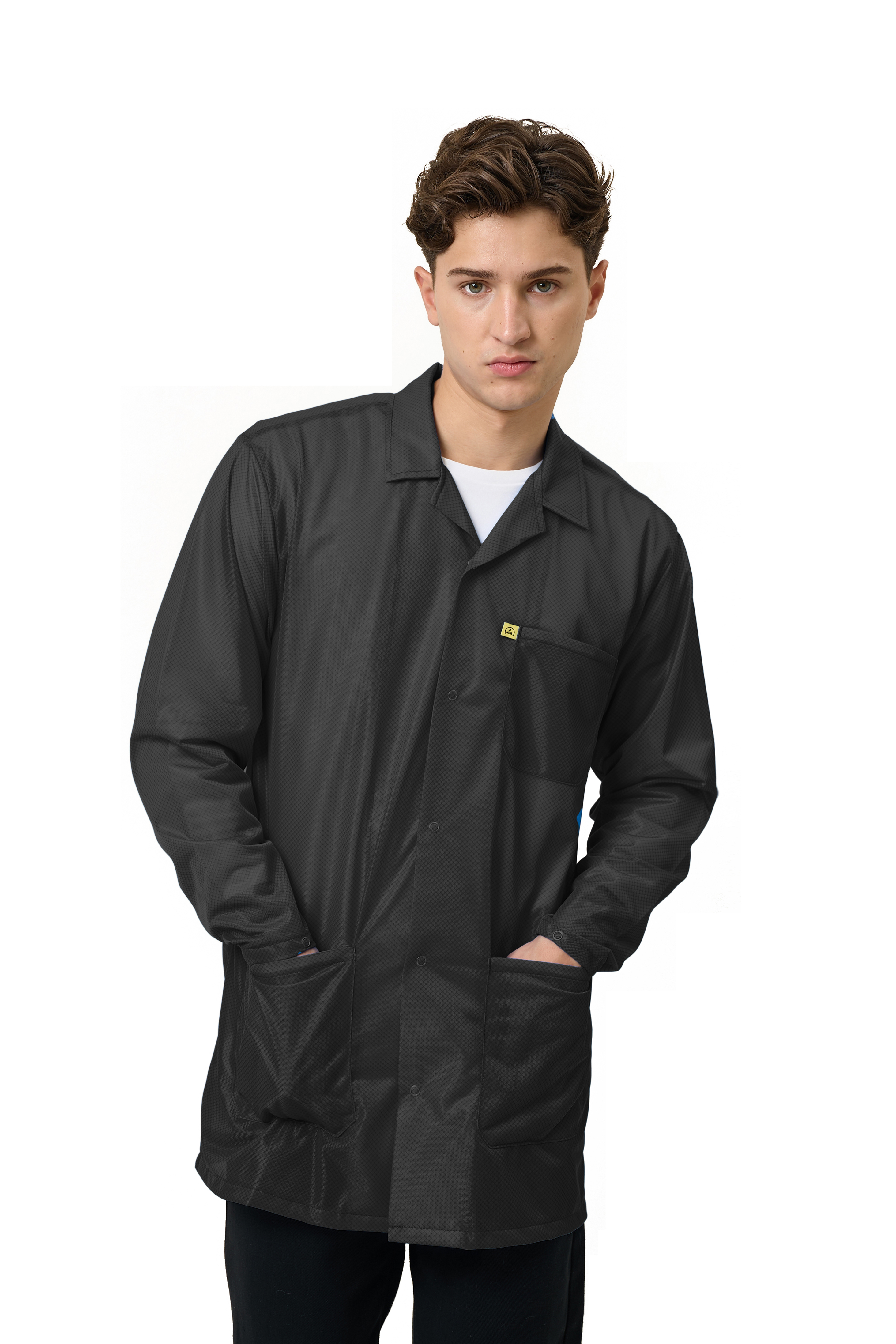 Black 9010 Series ESD Jackets: Lapel Collar, Three Snap Adjustment Sleeve