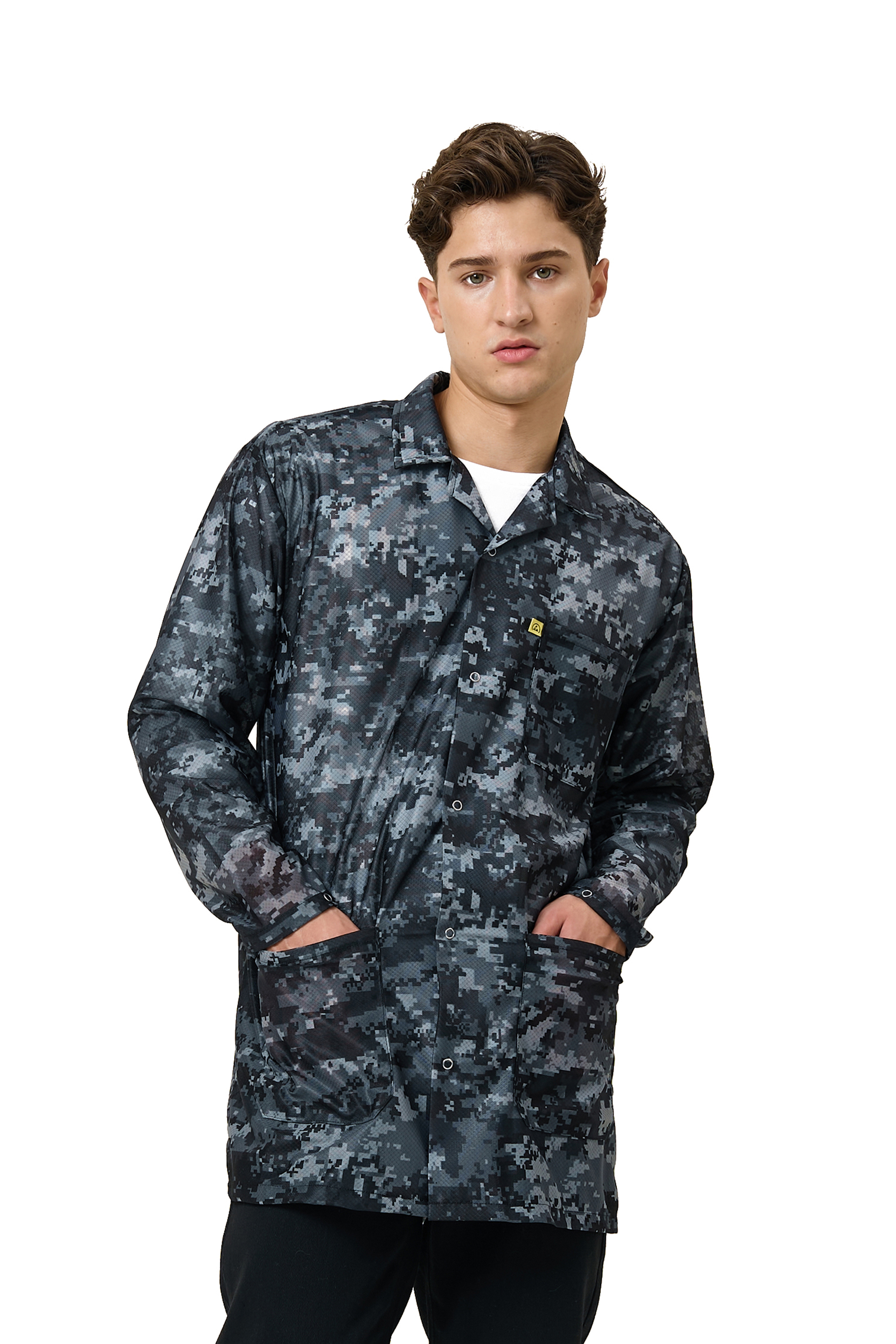 Grey Camouflage 9010 Series ESD Jackets: Lapel Collar, Three Snap Adjustment Sleeve