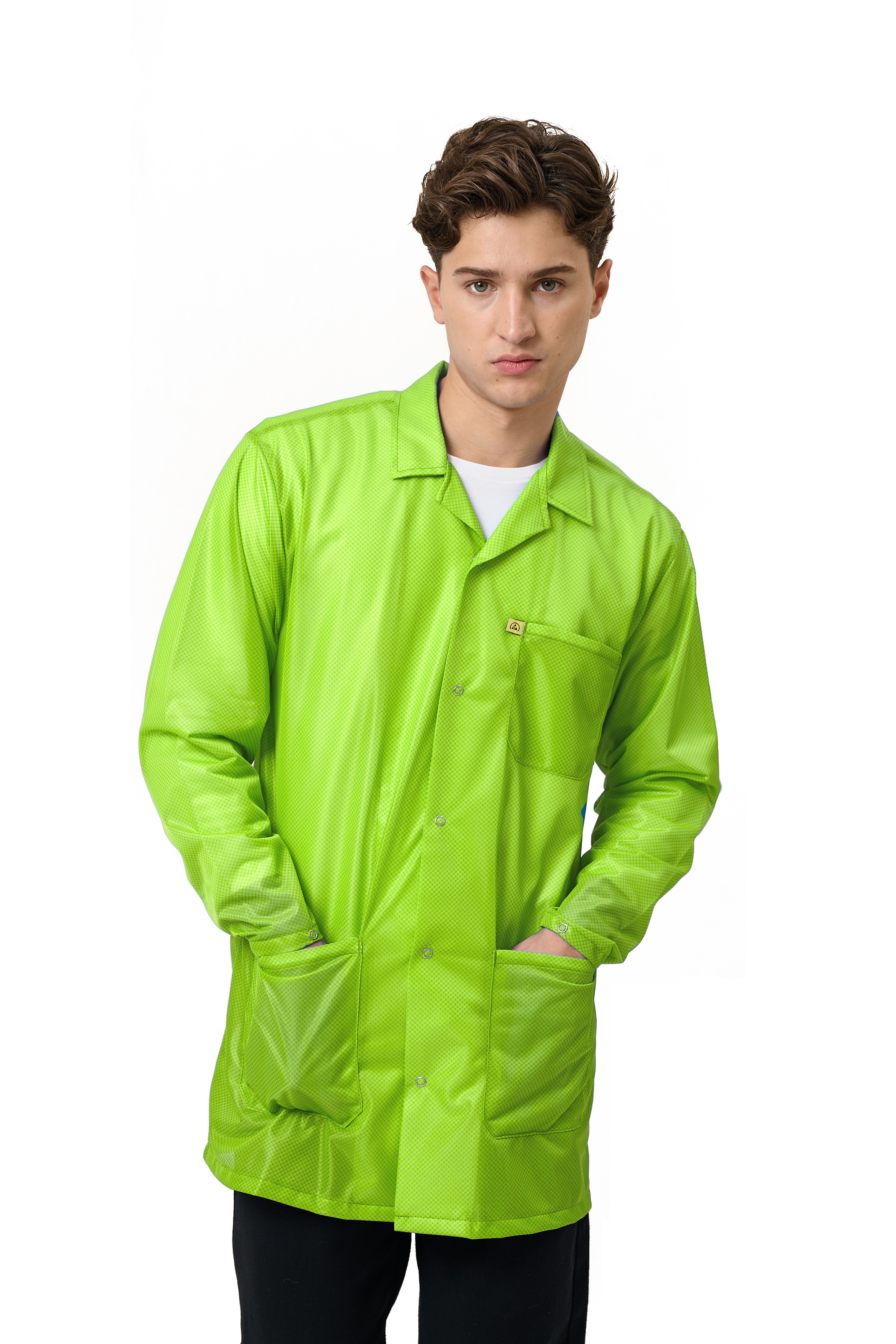 High Visibility Yellow/Green 9010 Series ESD Jackets: Lapel Collar, Three Snap Adjustment Sleeve
