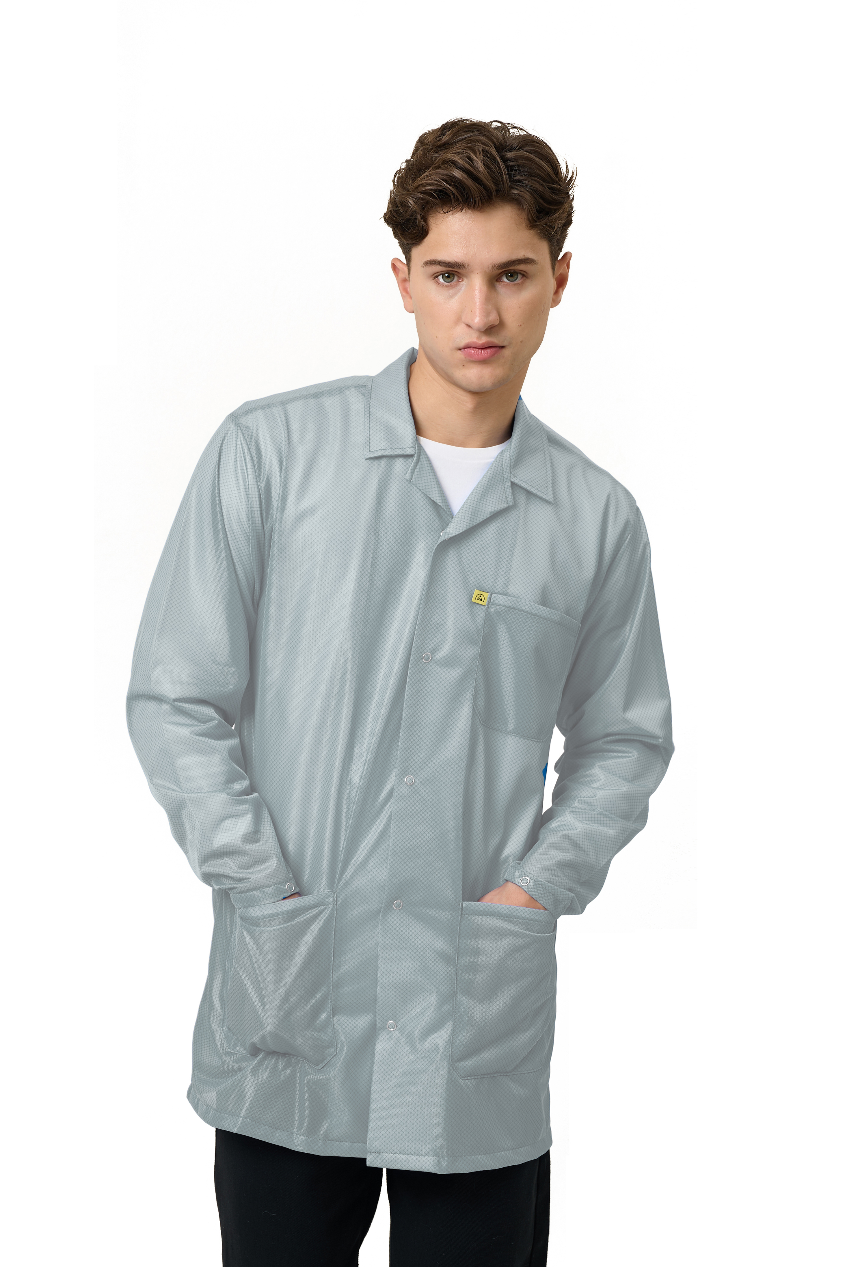 Grey 9010 Series ESD Jackets: Lapel Collar, Three Snap Adjustment Sleeve