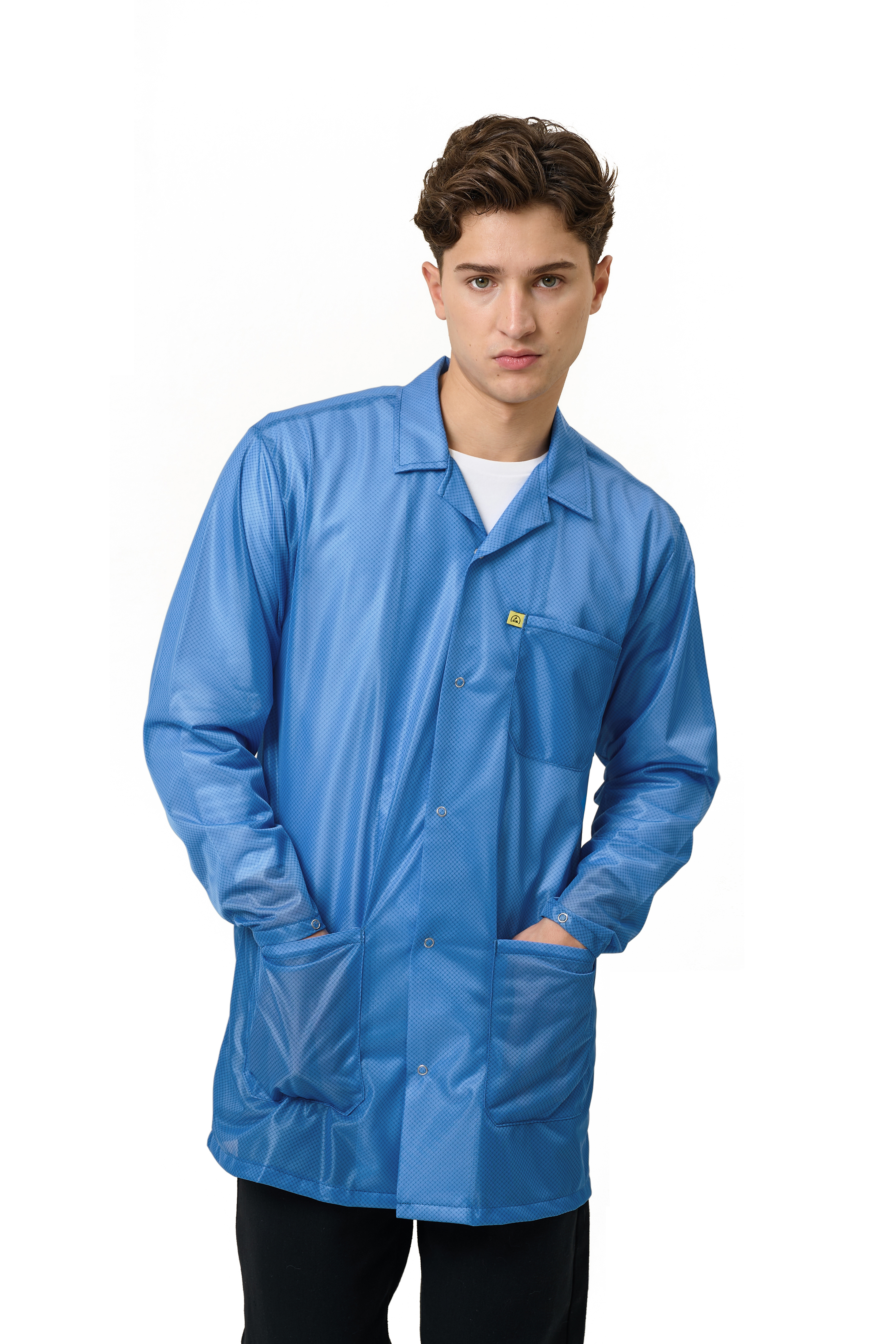 Light Blue 9010 Series ESD Jackets: Lapel Collar, Three Snap Adjustment Sleeve